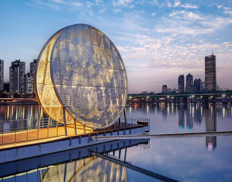 한강 노들섬에서는 거대한 보름달을 형상화한 '달빛노들'이 언제나 빛을 밝히고 있다.