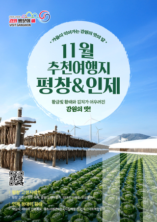 강원관광재단 최성현 대표이사는 "11월 추천 여행지인 평창과 인제에서 쌀쌀한 늦가을, 겨울의 초입에서 강원의 넉넉한 인심과 정겨운 맛을 느끼고 가시기를 바란다"고 말했다.